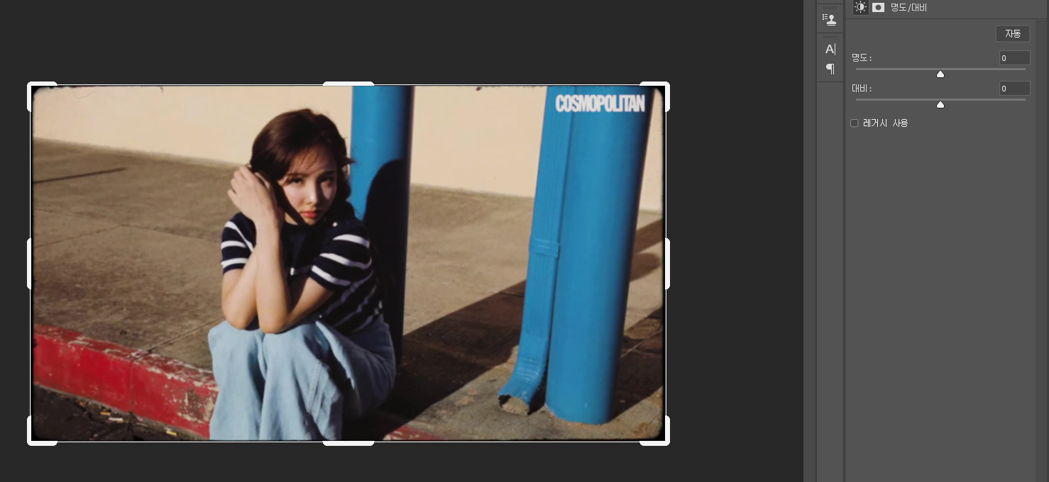 어둡게 보정된 코스모폴리탄 영상을 예시로 볼까요