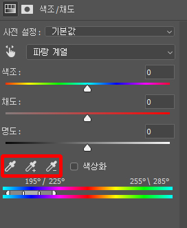 색조/채도/명도 슬라이더 해당 색의 색조, 채도, 밝기를 조정합니다