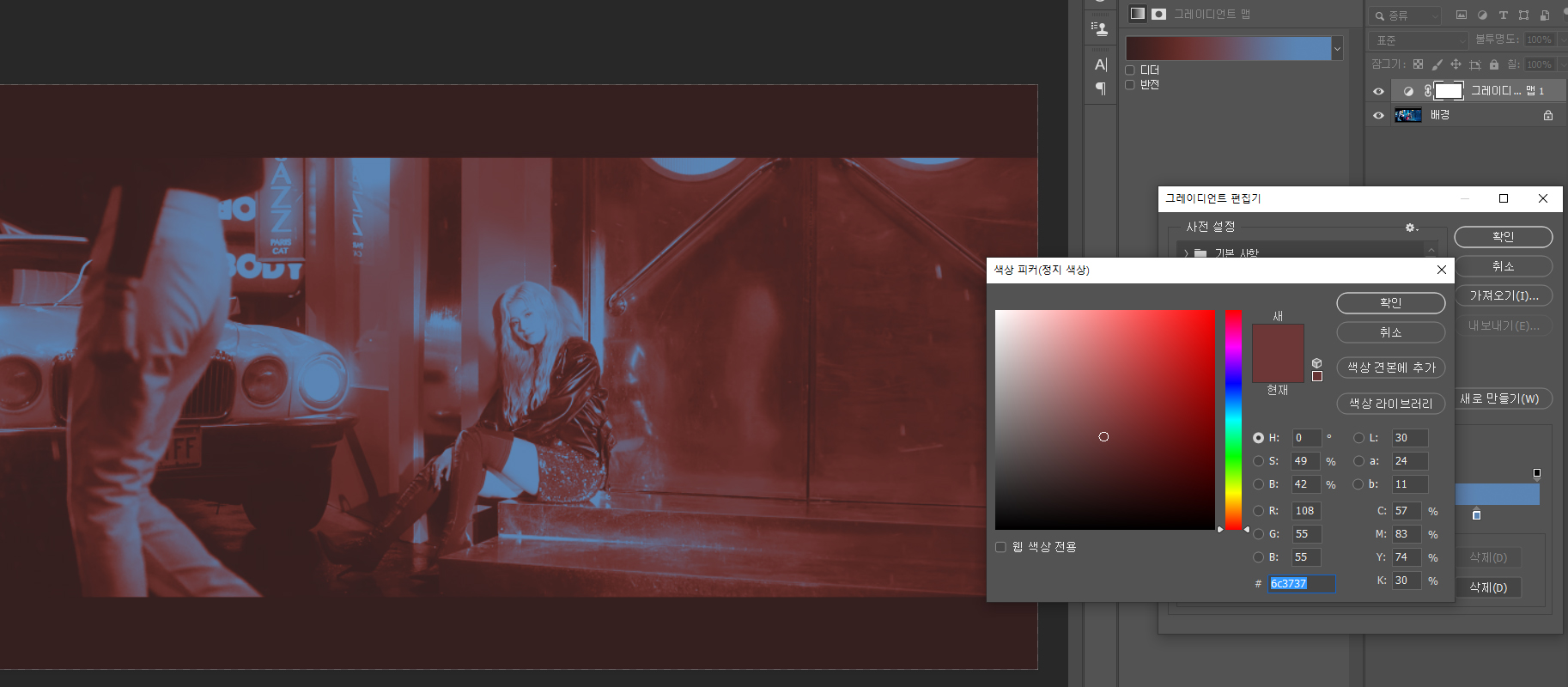 포토 필터와 그레이디언트 맵의 장점은 원하는대로 색을 입힐 수 있다는 점입니다