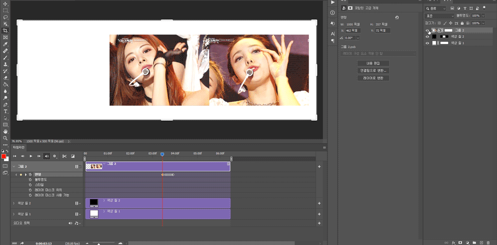 저는 움짤 폭을 500픽셀로 만들었으니 500픽셀만큼 왼쪽으로 이동시켜야하니 -500을 넣었어요